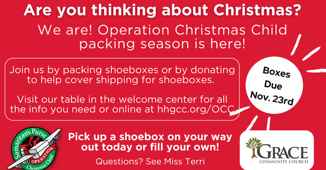 Are you thinking about Christmas?We are! Operation Christmas Child packing season is here! Join us by packing...